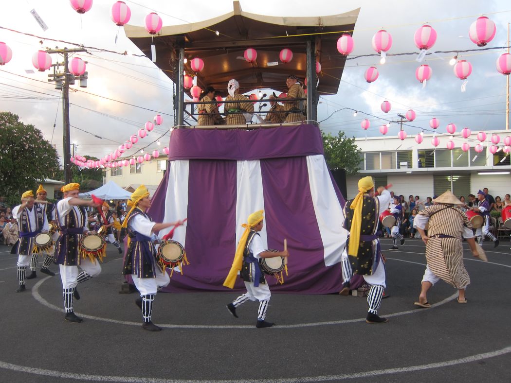 And since I grew up in Kalihi, we would often attend the lively bon dance at the Okinawan Jikoen Hongwanji Mission on the corner of Likelike Highway and School Street. It’s one of those bon dances where live musicians still play in the yagura (high wooden scaffold around which the dancers circle). No taped music here!