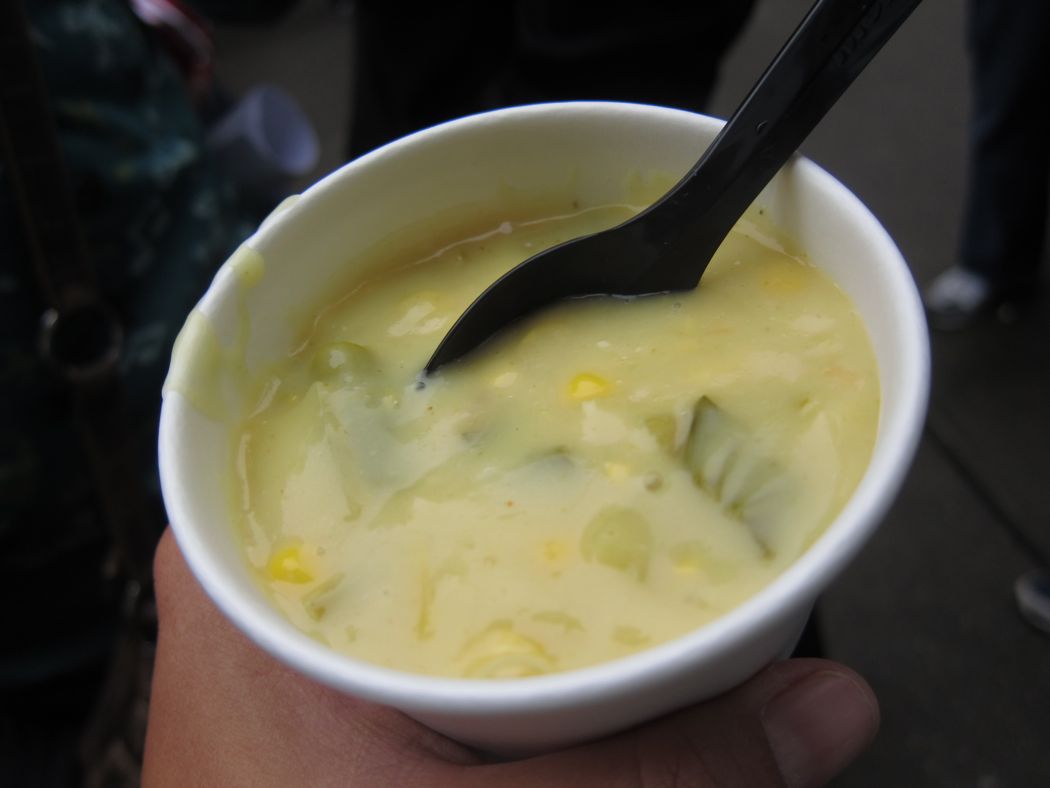 We headed to Pike Place Chowder — before it opened! — and sampled its famous and award-winning New England clam chowder and seafood bisque. I had the vegan corn chowder that was utterly delicious.