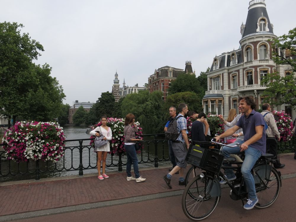 Everyone, it seems, rides a bike. You actually have to dodge them if you bravely decide to walk the streets along the canals. There are gray-haired women, long-legged fräulein in high heels, men in suits, teens in cut-off jeans — all riding around the city atop bicycles outfitted with three important things: lights (you can get a ticket for not turning on your lights at night), baskets or saddlebags to carry around groceries, and heavy chain locks (theft here is ridiculously common).