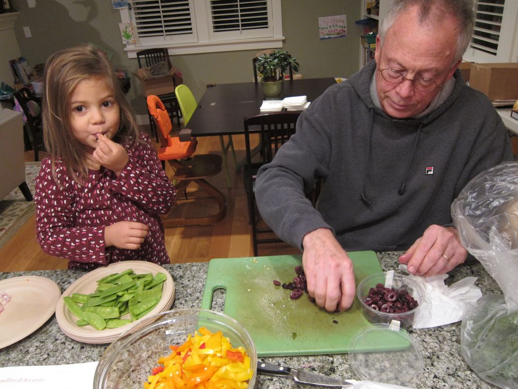 We had done a lot of eating yesterday — but we kept some room for dinner. We spent the evening with Derek's family, who live in the area. This is Rose and Uncle Stan, helping to prepare dinner.