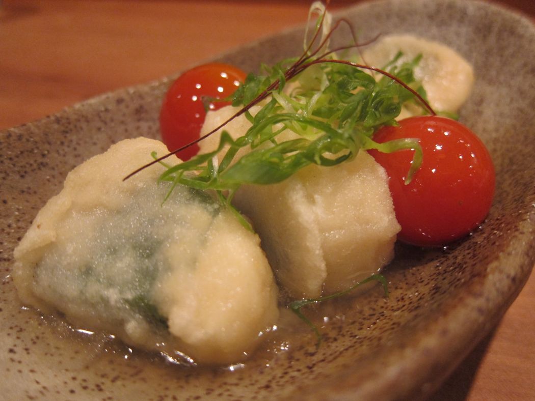 This agedashi ($9.50) was made with buffalo mozzarella instead of tofu, though prepared the same way. The cheese is flash-fried and placed in a light dashi (broth). It wasn't my favorite — though it was totally edible — but the cheese was a bit too bland. It needed something to kick up the flavors a little.