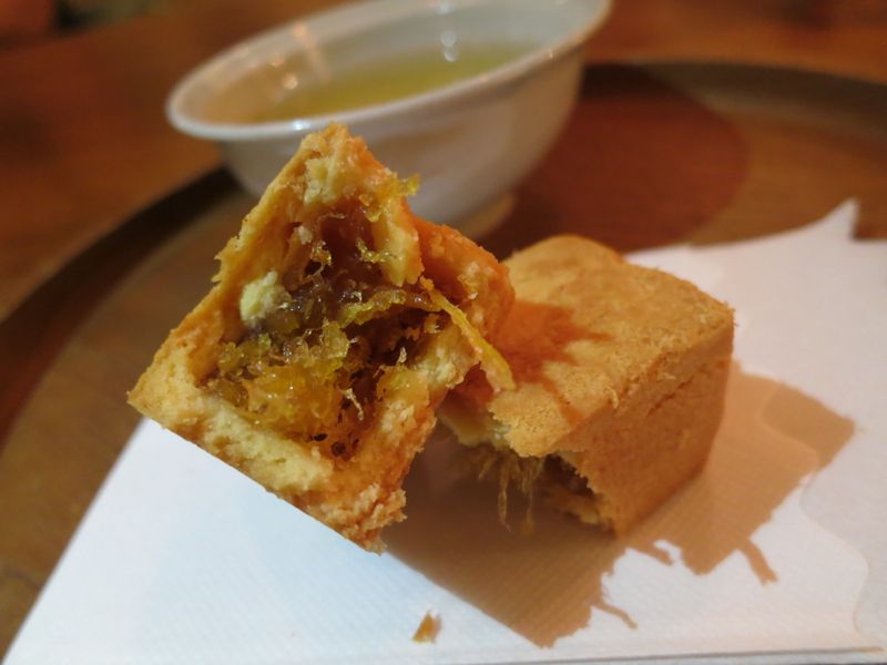 Here's the difference: the outside is a combination of a crust and shortbread. It's buttery and crunchy, a great combination. And the inside is perfection. It's not just pineapple jam; you can actually see the fibers. I'm telling you, this was stellar, beyond stellar. I could have eaten 10 more!