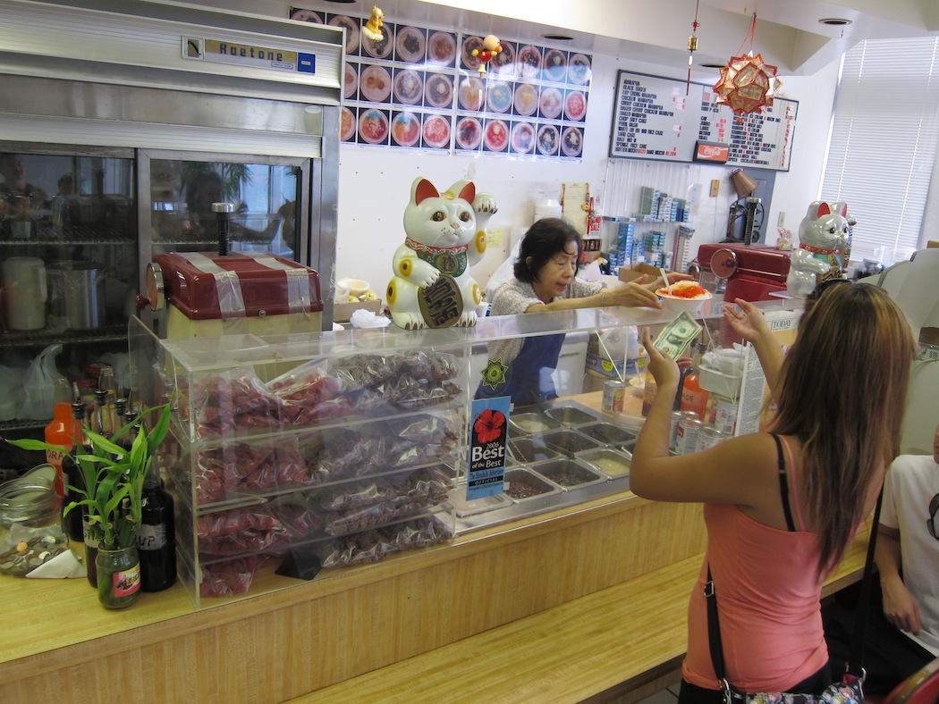 So we headed to Ice Garden in Aiea Shopping Center (808.488.5154), known for its unique shave ice toppings like chocolate syrup, oatmeal and salted peanuts.