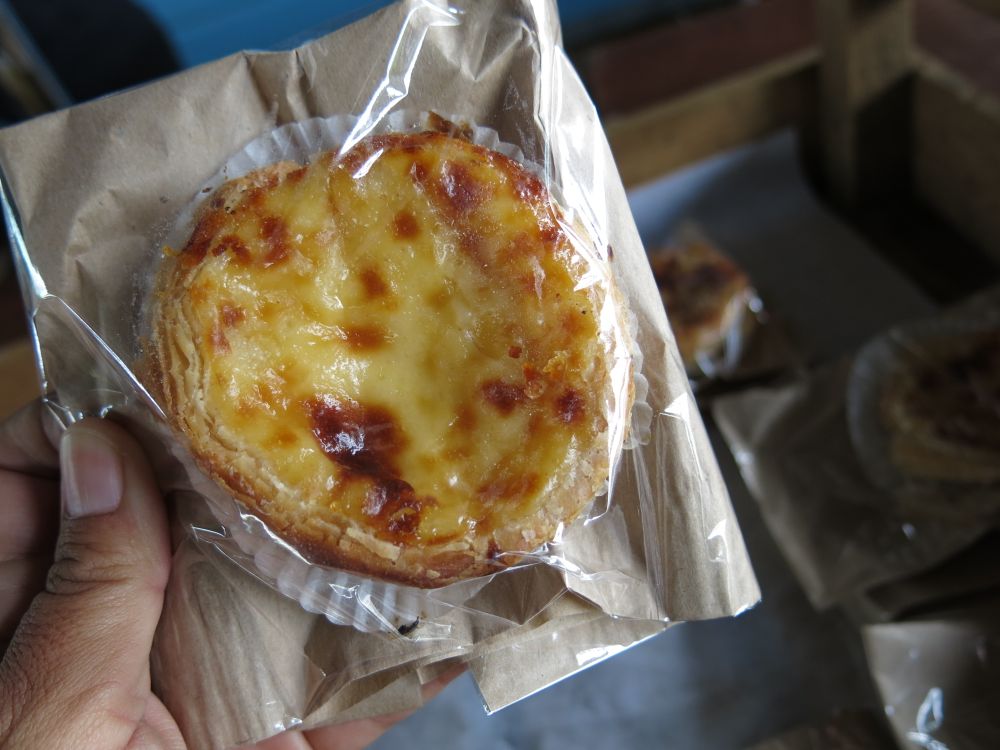It also sold a Portuguese tart filled with custard. It's called pastel de nata, a traditional egg cart pastry very common in Portugal and Brazil (and wherever there's a significant Portuguese community). It tasted like a mini custard pie — and it was delicious. I need to learn how to make these!